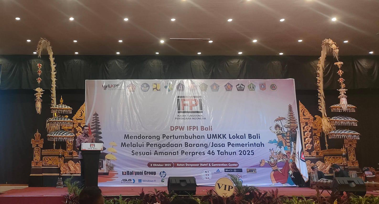 Denpasar, PASTI PBJ// Kepala Bagian Pengadaan Barang dan Jasa Sekretariat Daerah Kabupaten Buleleng, I Made Suwitra Yadnya menghadiri peringatan Hari Ulang Tahun ke-2 Dewan Pengurus Wilayah Ikatan Fungsional Pengadaan Indonesia (DPW IFPI) Provinsi Bali yang mengusung tema “Mendorong Pertumbuhan UMKM Lokal Bali Melalui Pengadaan Barang/Jasa Pemerintah Sesuai Amanat Perpres Nomor 46 Tahun 2025.”