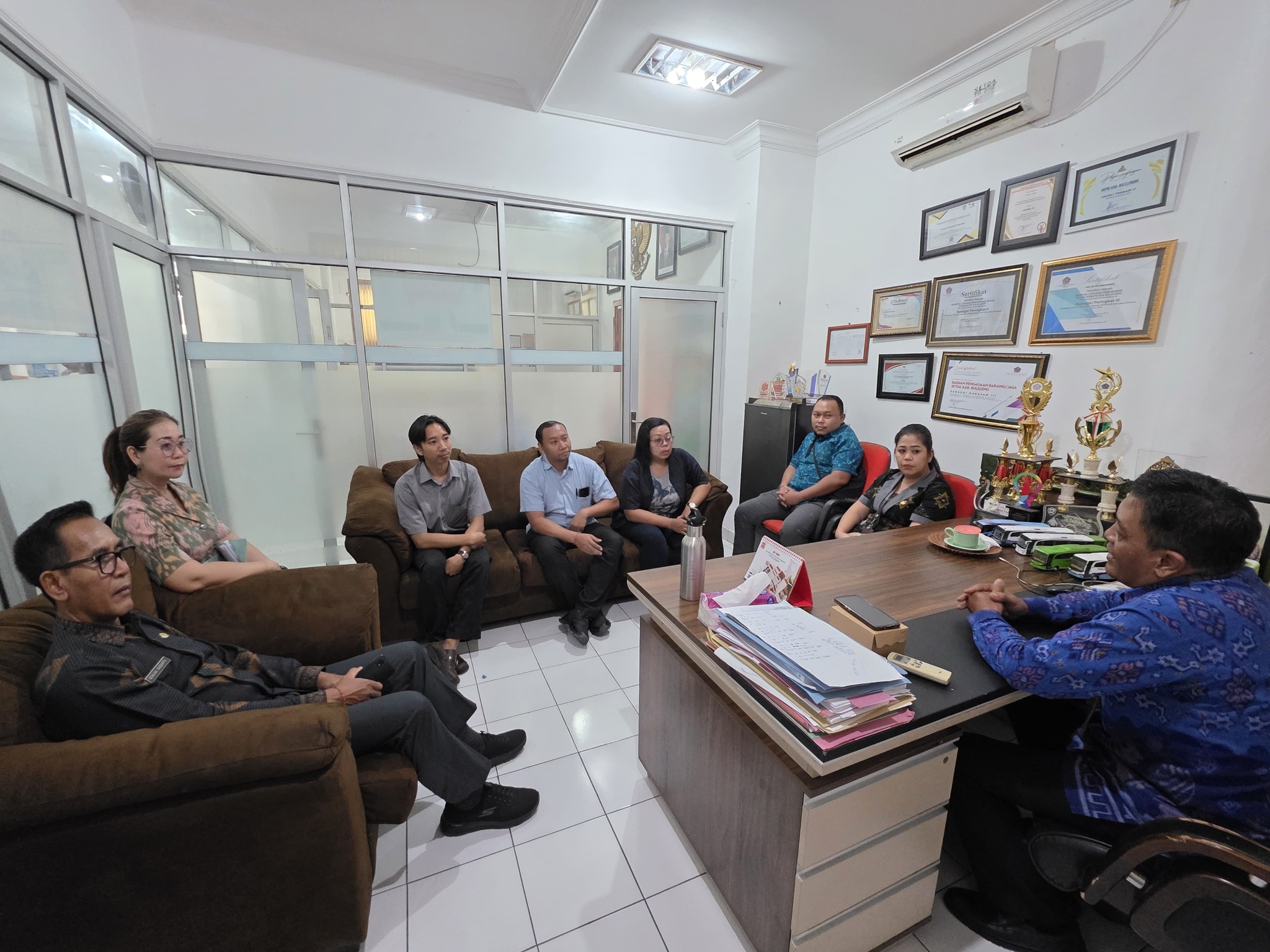 Singaraja, PASTI PBJ// Bertempat di ruang kerjanya, Selasa (14/10), Kepala Bagian Pengadaan Barang dan Jasa Setda Kabupaten Buleleng, I Made Suwitra Yadnya, didampingi oleh JF PBJ, menerima kunjungan Kepala Bagian Ekonomi dan Pembangunan bersama penyedia barang/jasa.