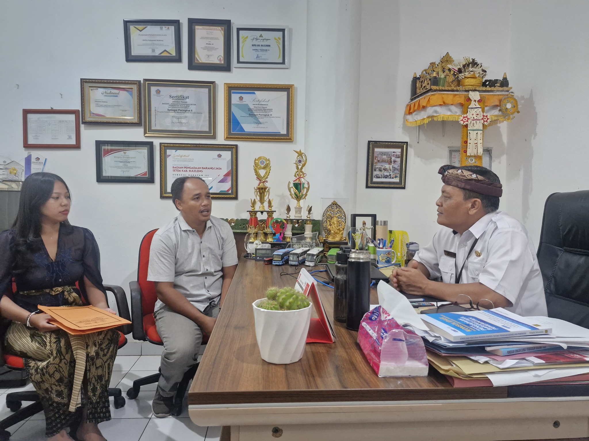 Singaraja, PASTI PBJ// Bertempat di ruang kerjanya, Kepala Bagian Pengadaan Barang dan Jasa (PBJ) Setda Kabupaten Buleleng, I Made Suwitra Yadnya yang turut didampingi JF PBJ yang juga selaku mentor menerima kunjungan dosen pembimbing dari Universitas Pendidikan Ganesha (Undiksha) Singaraja, Kamis (6/11).