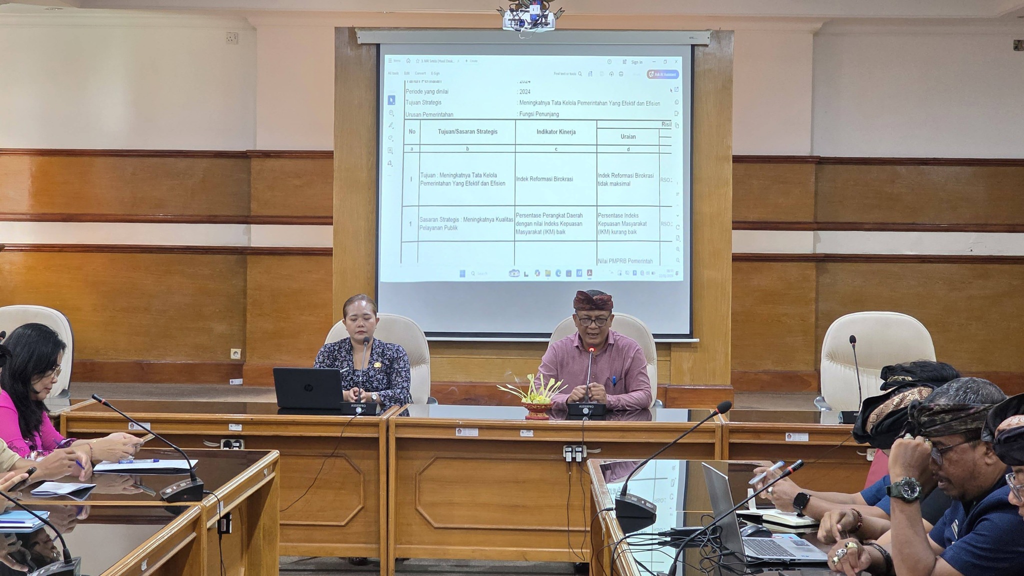 Tahapan berikutnya, Ketua Tim Monitoring dan Evaluasi menyampaikan hasil Monitoring dan Evaluasi Manajemen Risiko Tahun 2025, yang memuat capaian, temuan, serta rekomendasi perbaikan dalam pengelolaan risiko di lingkungan Sekretariat Daerah Kabupaten Buleleng.