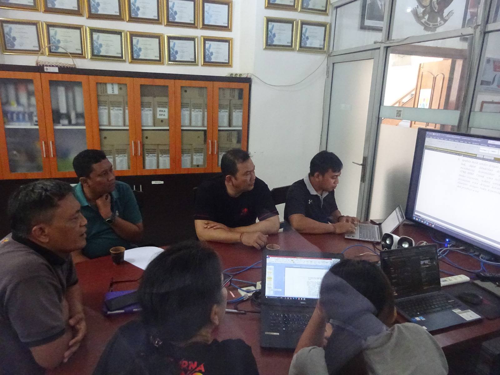 Singaraja, PASTI PBJ// Kepala Bagian Pengadaan arang dan Jasa, I Made Suwitra Yadnya, bersama Fungsional PBJ menerima kunjungan Kabid Penataan Bangunan Dinas PUTR Kabupaten Buleleng dan tim teknis di ruang LPSE, Jumat siang (05/12/2025).